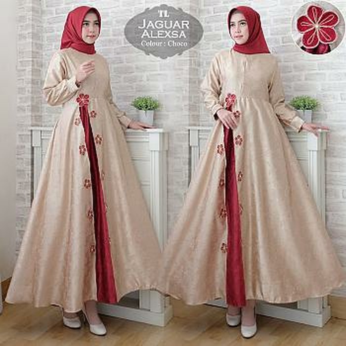 Model baju gamis long dress muslim pesta unik terbaru yang terbuat dari bahan jaguar rubiah modern sesuai trend masa kini, dihadirkan di toko online shop .